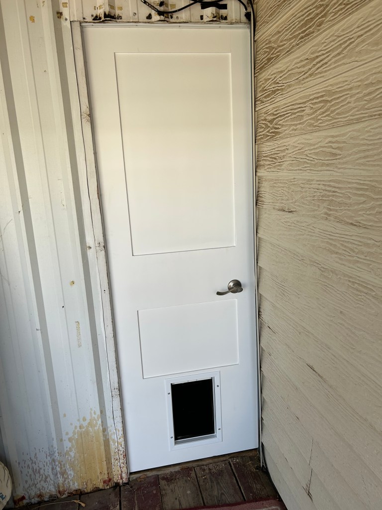 I repair, adjust and upgrade your interior or exterior doors in your home. In the pictures below I have removed, painted and flipped a door in a home so it opens from the other side. This made more sense with the flow of the room. I made a custom back door for a home that was an unsual size and needed a door handle moved in so it would clear the opening. The last photo is a custom door with an unusally large pet door installed. I can upgrade your interior or exterior doors to newer styles and I install storm doors too. Replace the bad weatherstripping around your existing doors.